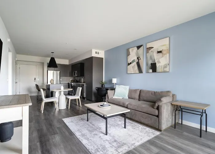 Landing Modern 1Bd Clubhouse Courtyard apartment provides an equipped kitchenette with all necessary utensils to prepare meals.